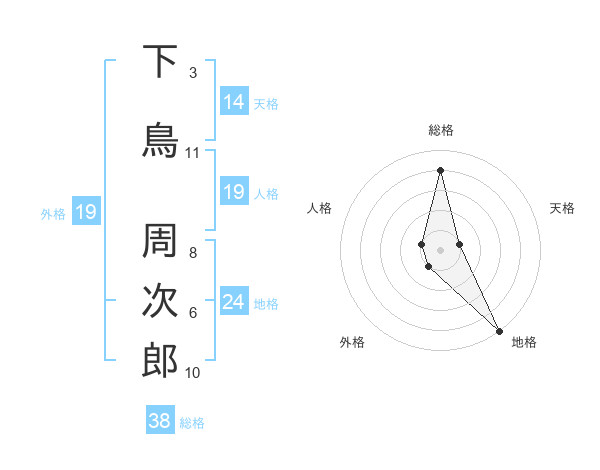 下鳥 周次郎さんを姓名の画数から五運を鑑定