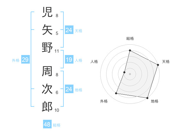 児矢野 周次郎さんの総格は48画の4点