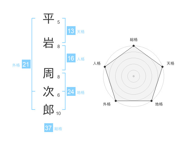 平岩 周次郎さんの総格は37画の5点!