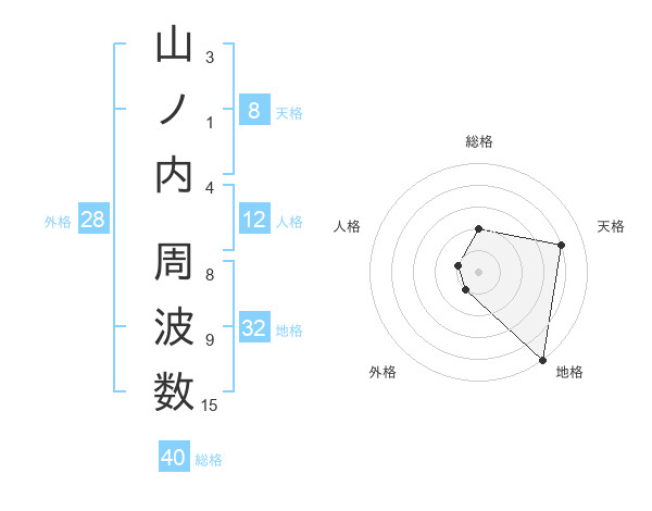 山ノ内 周波数さんを姓名の画数から五運を鑑定
