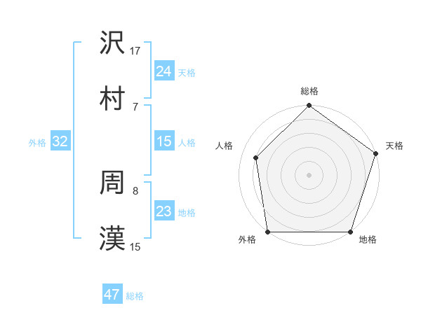 沢村 周漢さんを姓名の画数から五運を鑑定