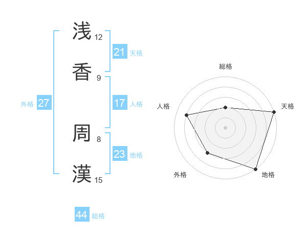 浅香 周漢さんの天格は21画の5点!