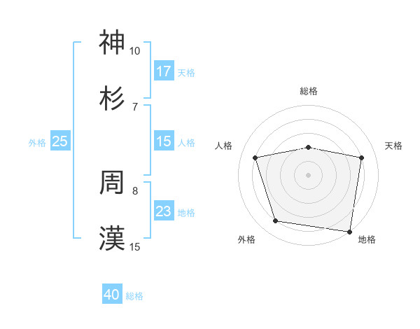 神杉 周漢さんを姓名の画数から五運を鑑定