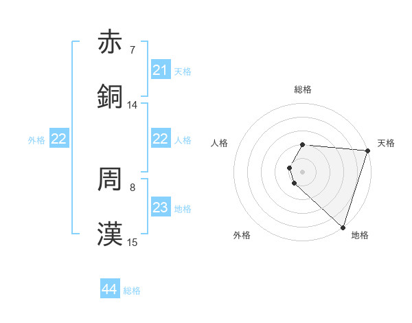 赤銅 周漢さんを姓名の画数から五運を鑑定