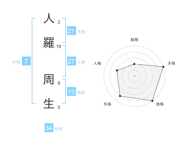 人羅 周生さんの天格は21画の5点!