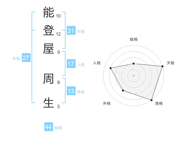 能登屋 周生さんの総格は44画の2点!