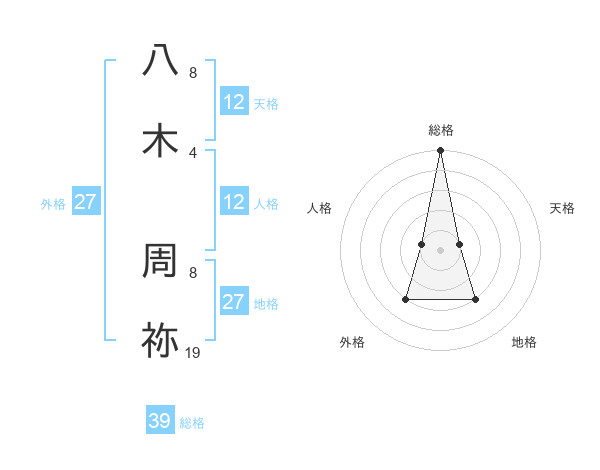 八木 周祢さんの総格は39画の5点!