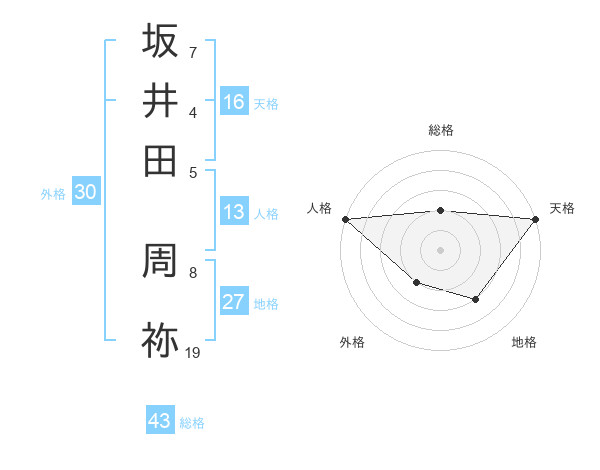 坂井田 周祢さんを姓名の画数から五運を鑑定