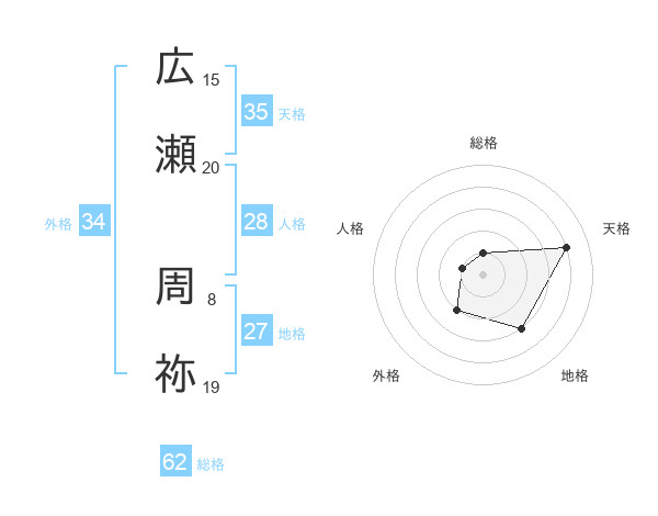広瀬 周祢さんの天格は35画の4点!