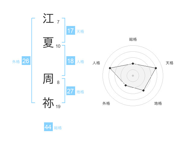 江夏 周祢さんの天格は17画の4点!