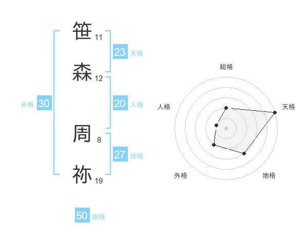 笹森 周祢さんの天格は23画の5点!