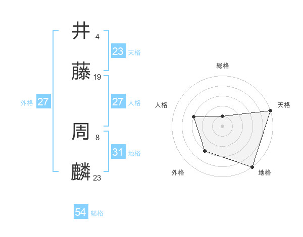 井藤 周麟さんを姓名の画数から五運を鑑定
