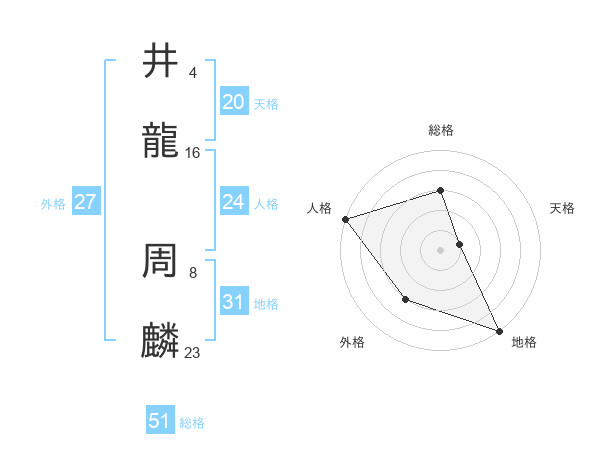 井龍 周麟さんの総格は51画の3点!
