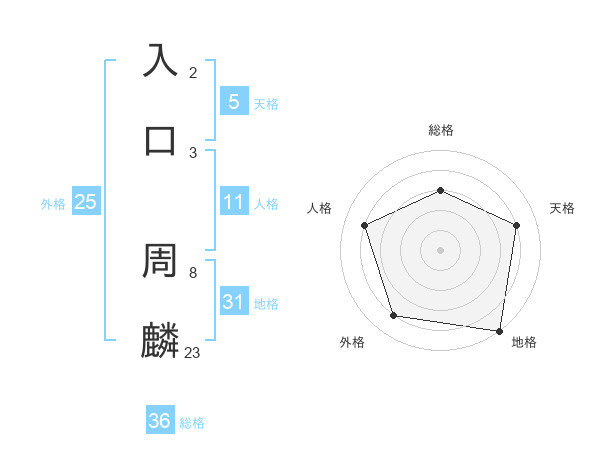 入口 周麟さんを姓名の画数から五運を鑑定