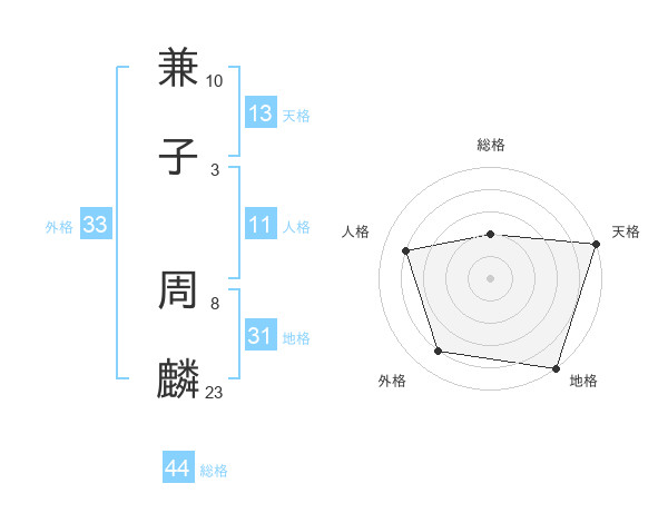 兼子 周麟さんの総格は44画の2点!