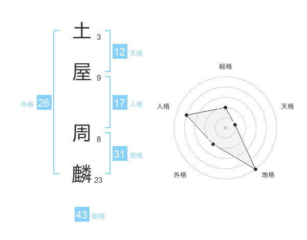 土屋 周麟さんの総格は43画の2点!