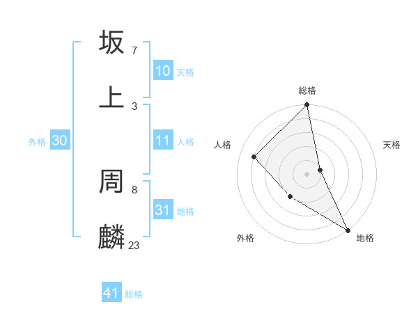坂上 周麟さんの総格は41画の5点!