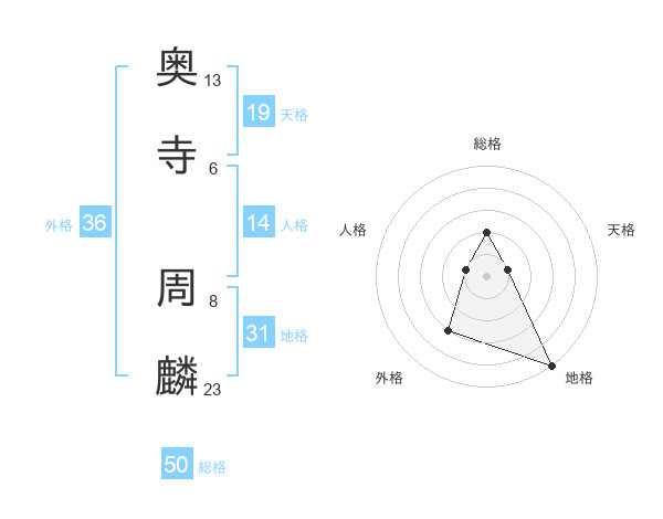 奥寺 周麟さんの総格は50画の2点!