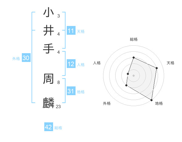 小井手 周麟さんを姓名の画数から五運を鑑定
