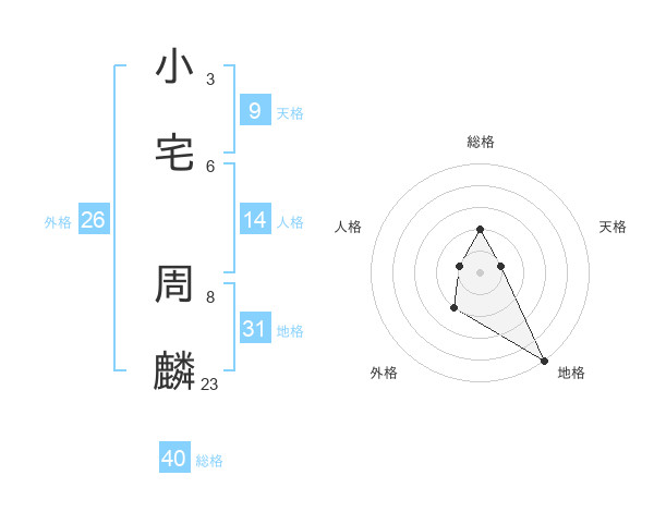 小宅 周麟さんの地格は31画の5点!