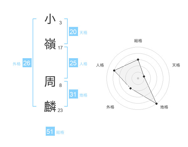 小嶺 周麟さんを姓名の画数から五運を鑑定