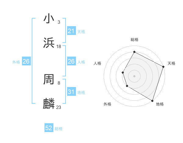 小浜 周麟さんを姓名の画数から五運を鑑定