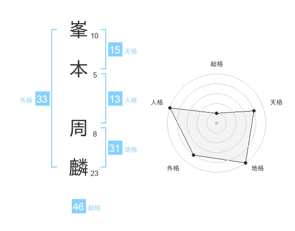 峯本 周麟さんの総格は46画の1点!