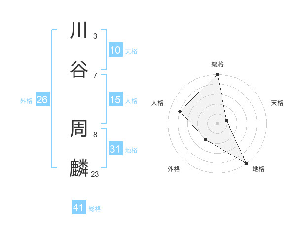 川谷 周麟さんを姓名の画数から五運を鑑定