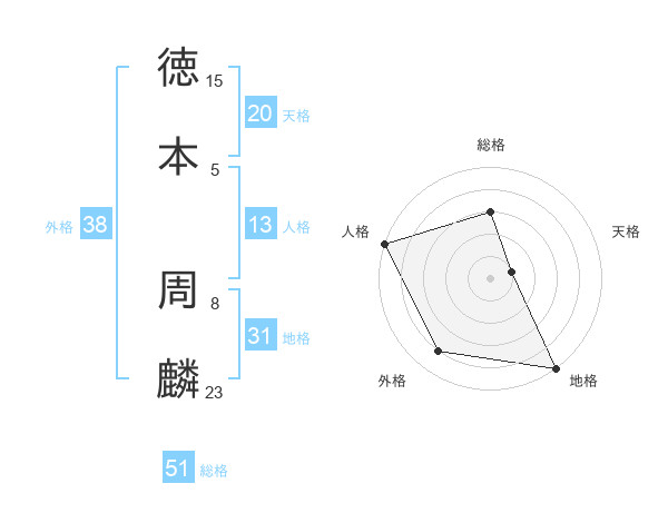 徳本 周麟さんの総格は51画の3点!