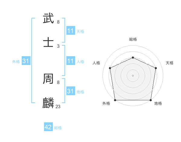 武士 周麟さんの地格は31画の5点!