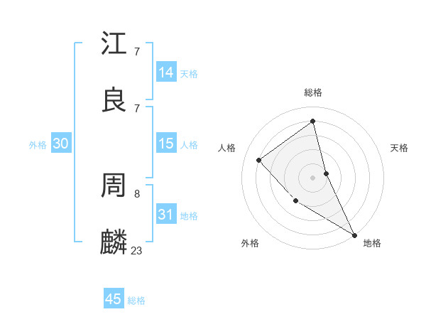 江良 周麟さんの総格は45画の4点!
