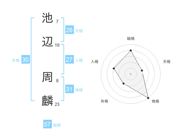 池辺 周麟さんの総格は57画の4点!