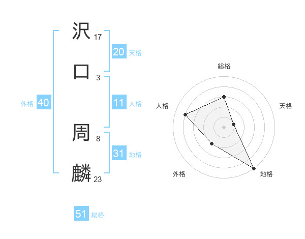 沢口 周麟さんの総格は51画の3点!