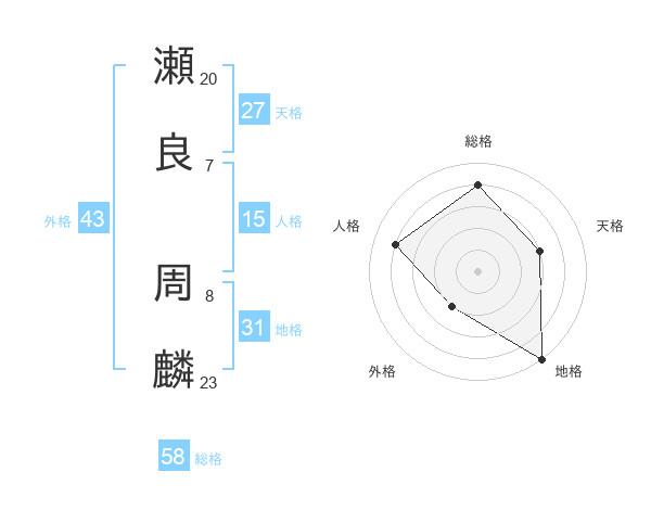瀬良 周麟さんの総格は58画の4点!