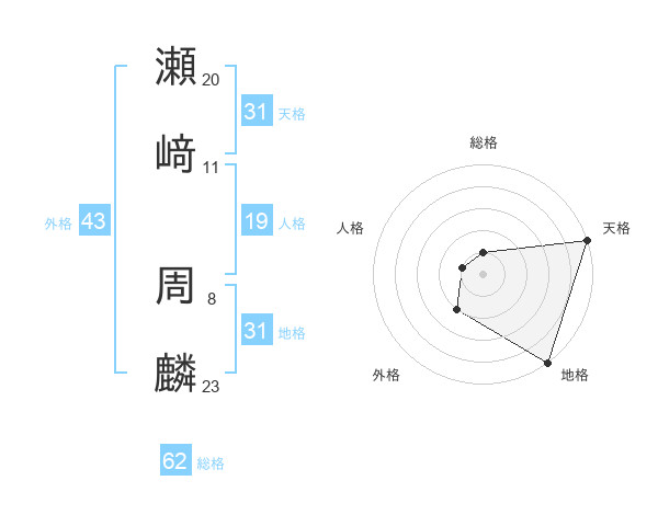 瀬﨑 周麟さんの天格は31画の5点!
