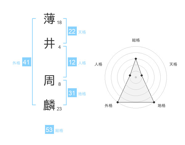 薄井 周麟さんの総格は53画の3点!