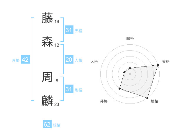藤森 周麟さんを姓名の画数から五運を鑑定
