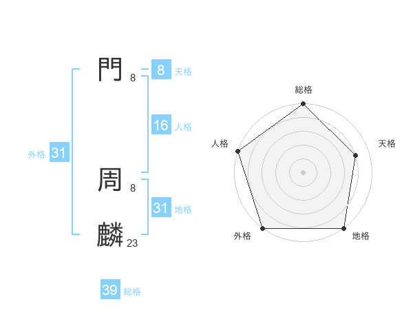 門 周麟さんの総格は39画の5点!