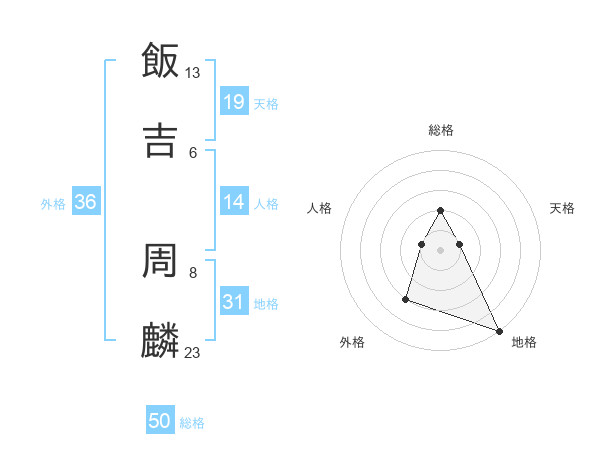 飯吉 周麟さんの総格は50画の2点!