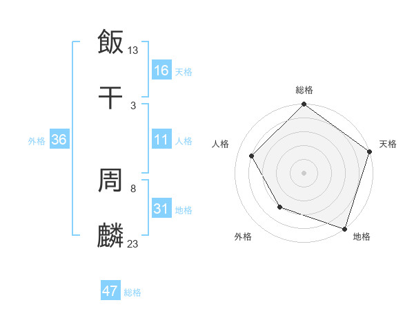 飯干 周麟さんの総格は47画の5点!