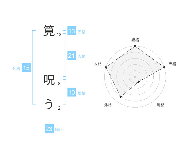筧 呪うさんの天格は13画の5点!