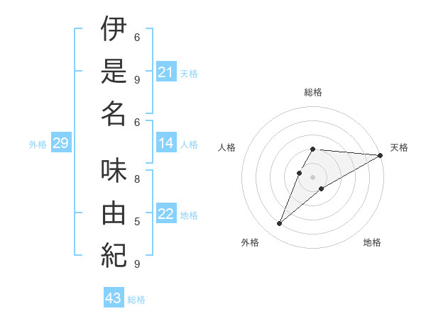 伊是名 味由紀さんの総格は43画の2点!