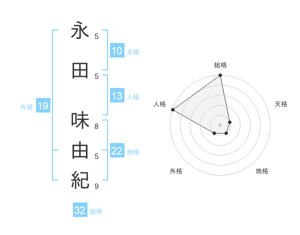 永田 味由紀さんの総格は32画の5点