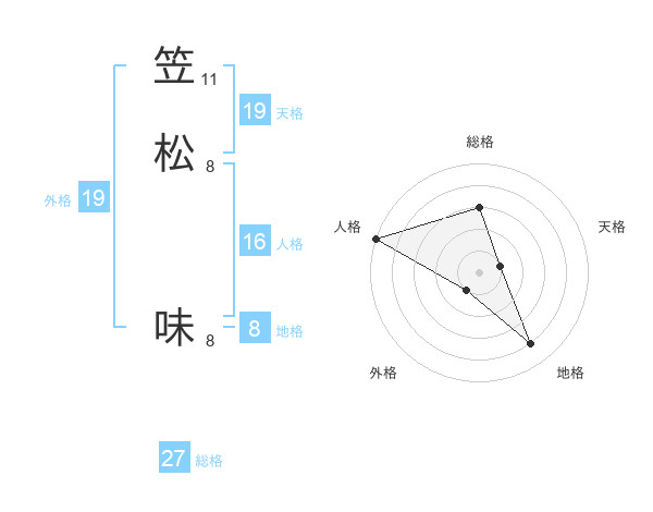 笠松 味さんの総格は27画の3点!