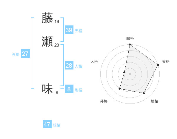 藤瀬 味さんの総格は47画の5点!