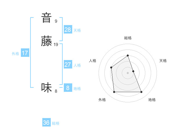 音藤 味さんを姓名の画数から五運を鑑定