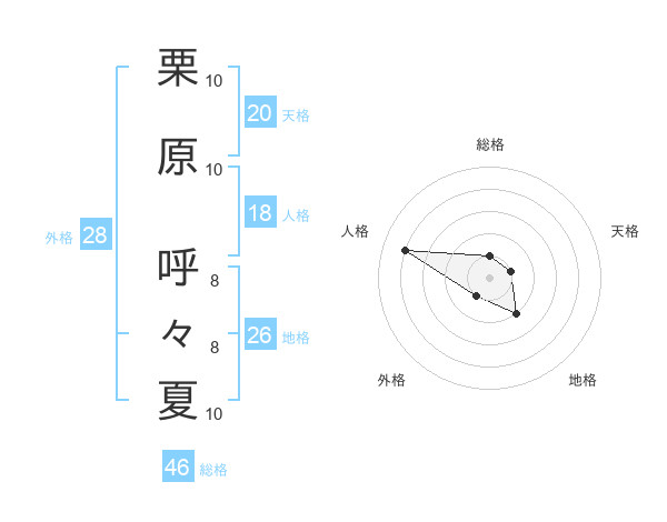 栗原 呼々夏さんを姓名の画数から五運を鑑定