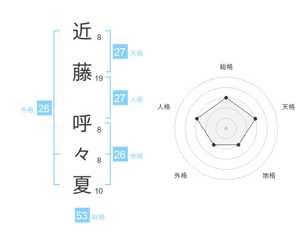 近藤 呼々夏さんを姓名の画数から五運を鑑定