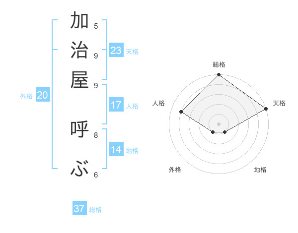 加治屋 呼ぶさんの天格は23画の5点