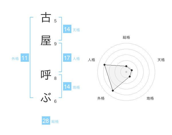 古屋 呼ぶさんを姓名の画数から五運を鑑定